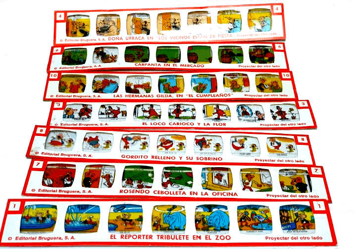 En 1970 la histórica empresa juguetera Rico (de Ibi, Alicante), en colaboración con la editorial Bruguera, comercializó uno de los primeros cines para niños: el "Proyector RICOLOR", diseñado para proyectar sus propias historietas, incluía tiras ilustradas a modo de diapositivas o transparencias protagonizadas por los personajes más famosos del cómic español de la época: Zipi y Zape, Carpanta, Doña Urraca, Mortadelo y Filemón... y también las hermanas Gilda. Cada set contenía siete transparencias, y se lanzaron al menos doce tiras diferentes. Además, el proyector funcionaba a pilas y era compatible con diapositivas estándar de 35 mm, lo que ampliaba su uso más allá de estas transparencias bruguerianas. El RICOLOR era, en realidad, una adaptación del proyector estadounidense "Give-a-show" de Kenner (de la década anterior).