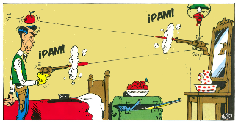 Morris crea gags muy efectivos con la repetición de viñetas y