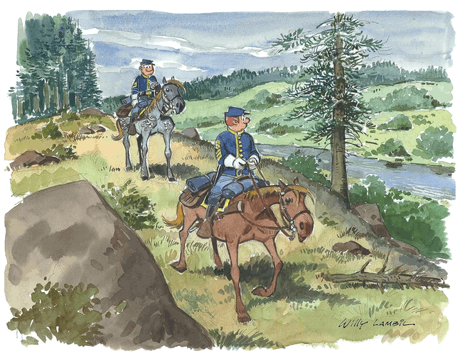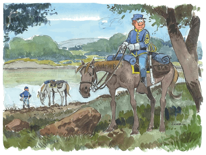 - Sargento Cornelius M. Chesterfield: Sargento del ejército de los Estados Unidos, miembro del 22.º de Caballería y principal protagonista de la serie, junto al cabo Blutch. Es entusiasta, ingenuo, aplicado, disciplinado y amante de la gloria militar (su principal objetivo) para alcanzar el estatus de héroe de guerra. Aceptará todo tipo de misiones, especialmente las más peligrosas. Quién sabe si, una vez consiga la gloria, llegue a despiertar el interés la hermosa Amélie Appeltown, de la que está locamente enamorado desde el día en que la conoció. En su día a día, como si de un gag recurrente se tratase, el personaje trata de impedir que Blutch deserte.