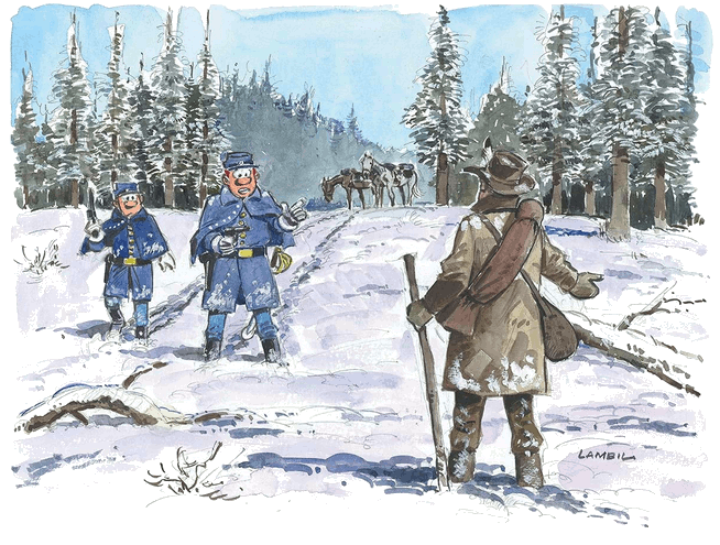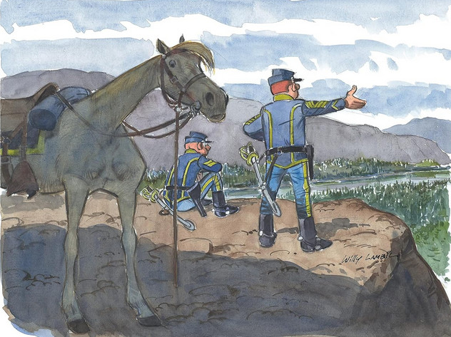 La marcha de Morris tuvo que ser un palo para Charles Dupuis. Además, ese mismo año el editor había prescindido de su redactor jefe, Yvan Delporte, reemplazado por Thierry Martens. Pero, como dice el refrán: "A rey muerto, rey puesto". Dupuis no se amilanó tras la marcha de Morris y tuvo que sacarse otro western de la manga. Contactó con Louis Salvérius (un tipo modesto al que llamaban cariñosamente "Salvé") y con varios guionistas entre los que se encontraban Charles Jadoul (Michel et Thierry), el director de Le Moustique, Albert Desprechins (Los hombrecitos) y Raoul Cauvin, buen amigo de Salvérius. Los candidatos tendrían que proponer ideas, ya que solo uno de ellos sería seleccionado. Cauvin imaginó una serie ambientada en plena Guerra de Secesión, en un fuerte en el oeste en el que estarían atrincherados unos soldados de la Unión, sufriendo el embite del pueblo indio, los pieles rojas.
