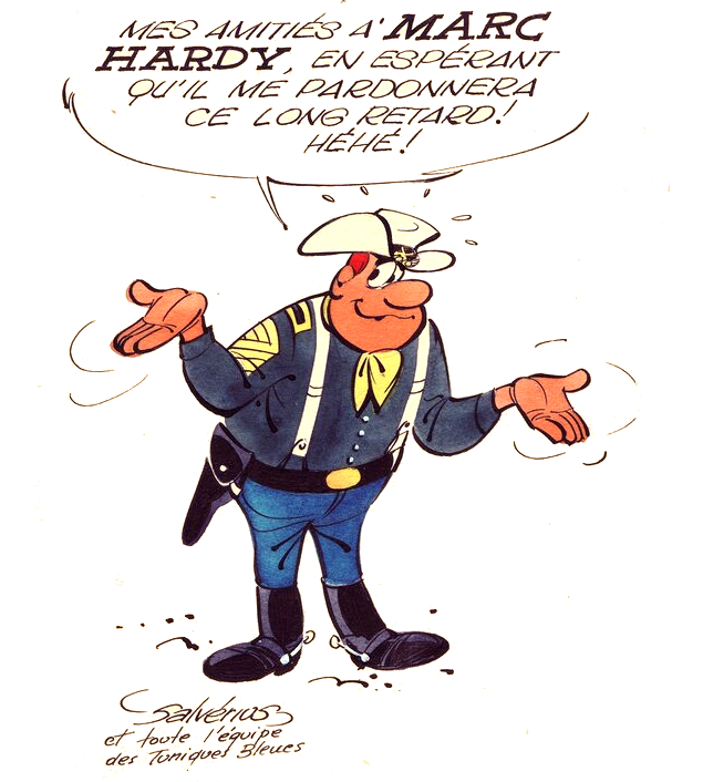 Cauvin fue el guionista elegido por Dupuis de entre todos los candidatos. Y fue una ventaja, ya que que, como decíamos, era muy amigo de Salvérius, pues se conocían de una etapa anterior, en el estudio de animación TVA, compartiendo fatigas y difíciles condiciones de trabajo, algo que une mucho. Salvé había ingresado con solo 21 años en el departamento de dibujo de la editorial Dupuis, empezando por hacer unos trabajos en Risque-Tout, en 1956. Empezó rotulando en la edición neerlandesa de Spirou, con sopas de letras y bocetos de animación anónimos. También hacía retoques de dibujos de los Gags de Poche. Hasta 1959 no creó sus primeros trabajos en los mini-récits, tras trabajar en un anuncio de publicidad en cómic de la bebida Cécémel. Con el tiempo, Dupuis le dará esa oportunidad de la que hablábamos con Casacas Azules.