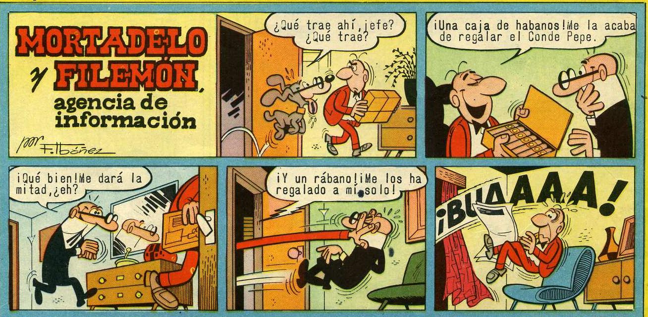 El conde Pepe regala a Filemón una caja de habanos. Mortadelo desea la mitad de los puros pero su jefe sólo le da uno haciéndole creer que están envenenados para que este acabe tirando la caja y pueda finalmente fumárselos todos él.