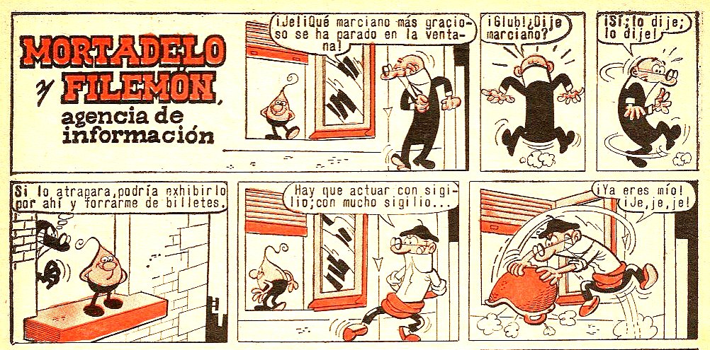 Mortadelo se encuentra a un marciano parado en la ventana y sin dudarlo lo atrapa y lo mete en una caja para exhibirlo y "forrarse" con él. Es por ello que le hace tragar a su jefe el contrato que lo esclavizaba pero justo antes de marcharse Filemón le avisa de que no pise a los marcianos que hay por toda la ciudad y que han llegado a oleadas.