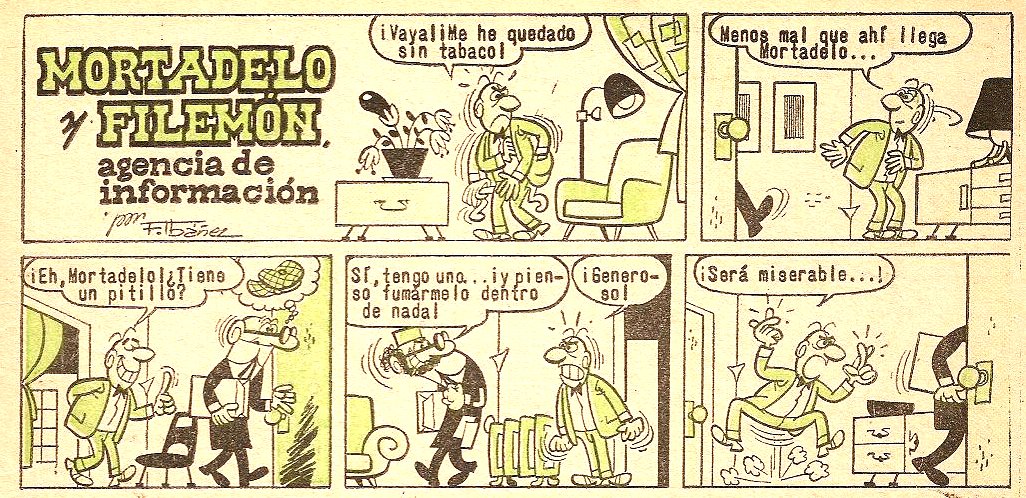 Filemón se queda sin tabaco y como Mortadelo no le ofrece ni el último pitillo que a él le quedaba decide, como revancha, abrir el paquete que Mortadelo llevaba consigo y que para su sorpresa contiene una caja de puros. Pero cuando Filemón se dispone a abrirla para fumárselos Mortadelo le comunica que en dicha caja había una bomba que se había intentado utilizar para atentar contra el emperador de Besugolandia que él mismo había descubierto a tiempo y se había traído a la oficina. Para desgracia de su jefe, el aviso llegará demasiado tarde y la bomba termina estallándole en sus narices.