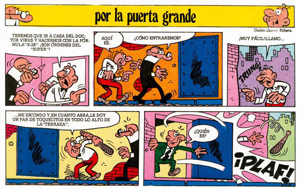 El "Súper" ha ordenado a Mortadelo y Filemón que acudan a la casa del doctor "Virus" y se hagan con la fórmula X-28.
