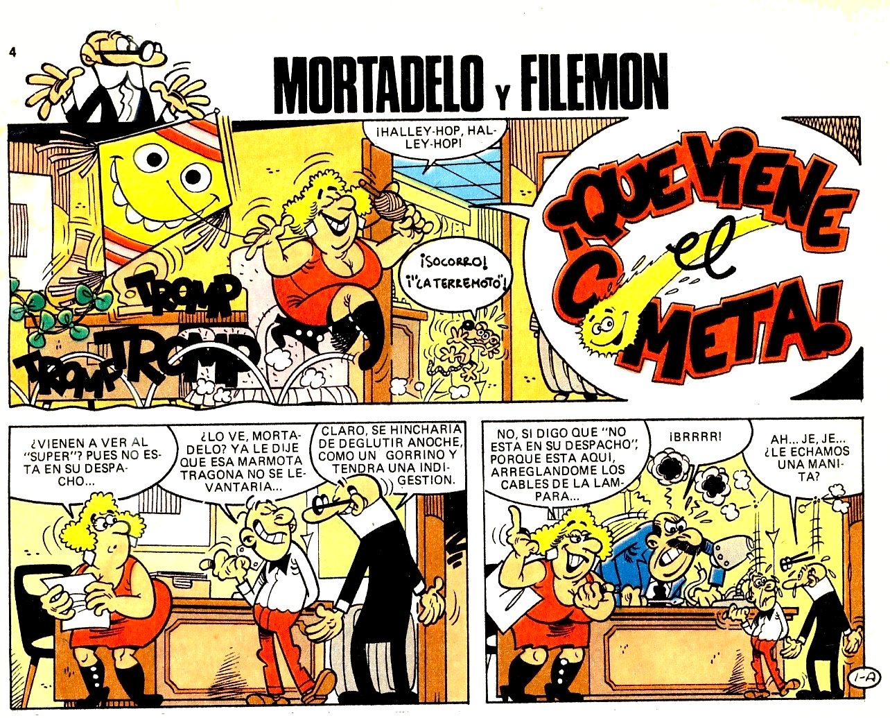 La N.A.S.A.L. necesita dos hombres para guiar la sonda dirigida al cometa Halley. El Súper ha pensado en Mortadelo y Filemón...