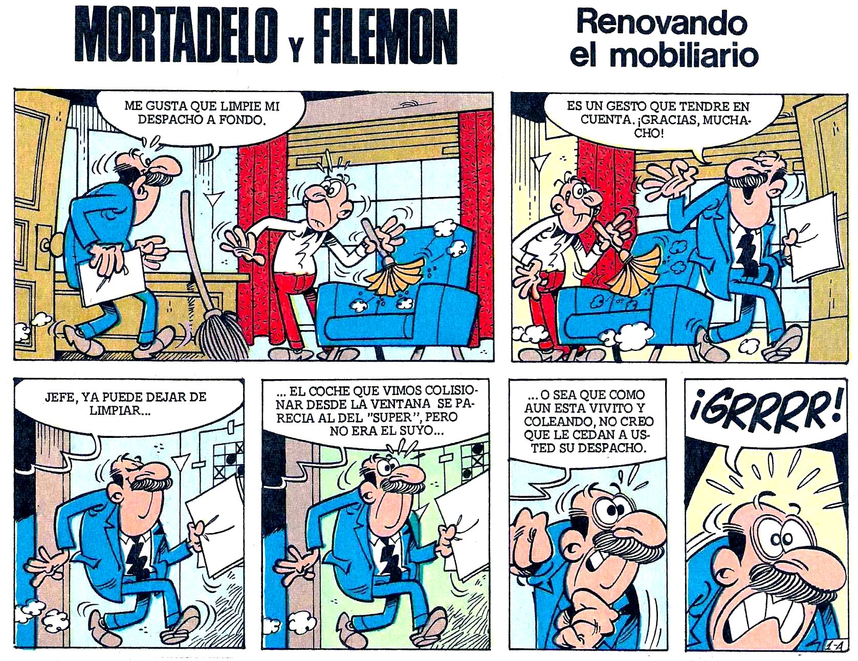 En la T.I.A. van a renovar algún mueble carcomido y el Súper pide a Mortadelo y Filemón que se encarguen del asunto: los agentes deberán subir hasta el quinto piso todos los muebles nuevos que ha comprado la organización, y no resultará tarea fácil.