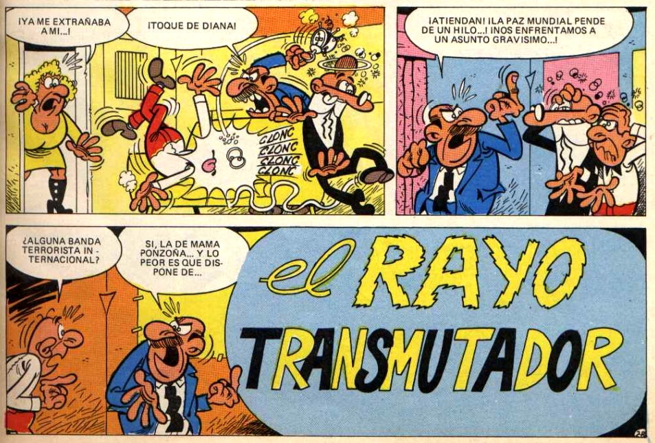 Begoña Ponzoña es una honrada ama de casa que enloquece tras comprobar que su declaración de la renta salía positiva. La mujer, presa de su locura, decide provocar el caos mundial repartiendo entre sus hijos pistolas con rayos transformadores cada uno de los cuales tiene un rayo transformador específico (uno convierte los objetos en armas, otro convierte el metal en gelatina, otro convierte a las personas honradas en gamberros…). Mortadelo y Filemón deberán capturar a todos y cada uno de los vástagos de Begoña Ponzoña.