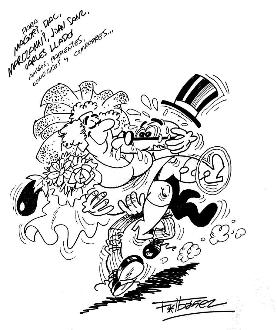 Ilustración de Francisco Ibáñez para unos amigos y parientes. Imagen compartida por Chespiro.