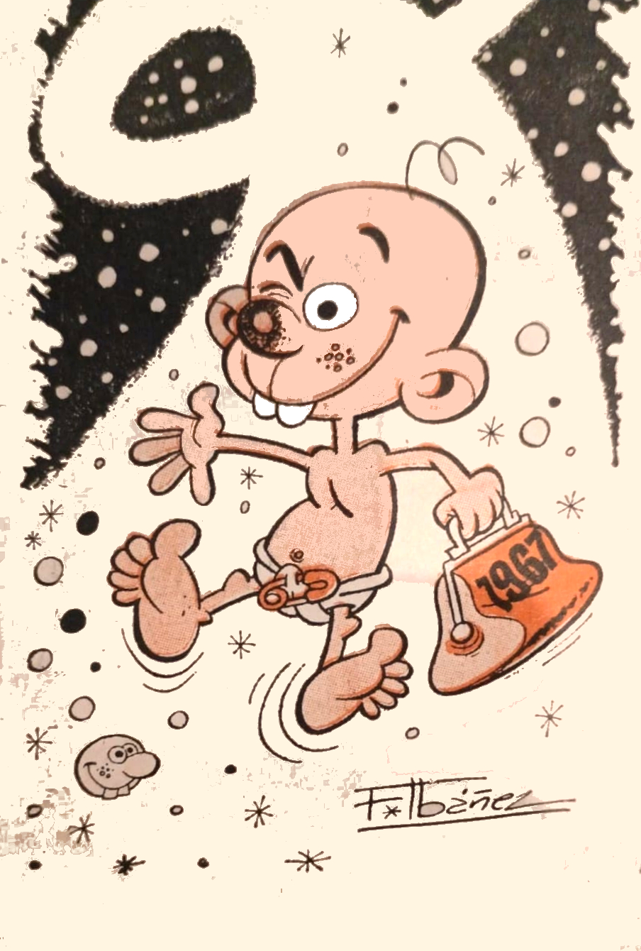Ilustración de Ibáñez para celebrar la llegada de 1967. Ilustración enviada por Mortadelón.