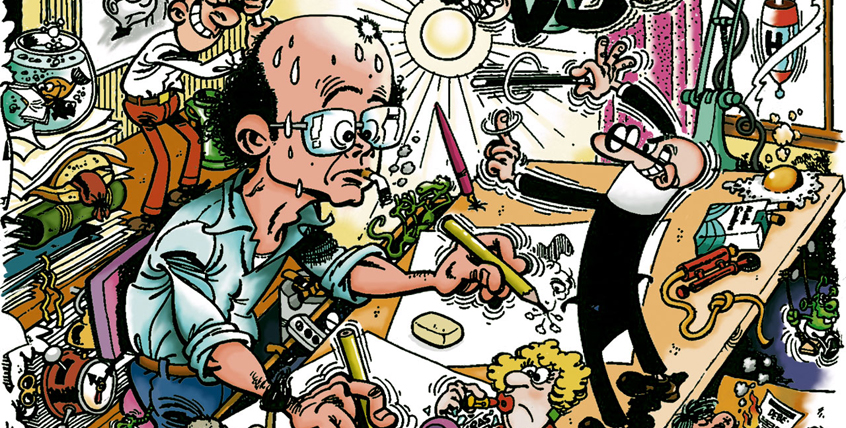 R: Claro. Esto de la historieta tiene dos fases. Una es la parte simplemente gráfica, que es a lo que estás acostumbrado a hacer toda la vida, casi con el tornillo. Pero luego, está la otra, la difícil, en la que tienes que pensar “¿qué pongo? ¿qué nuevos gags hago esta semana?”. Lo mismo puede llevarte 10 minutos, que te pasas 6 horas para preparar un guioncito.