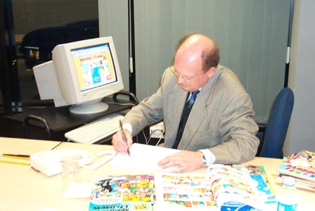 Ibáñez en plena faena. En unos segundos ya tenía el Mortadelo Internauta que habéis visto arriba