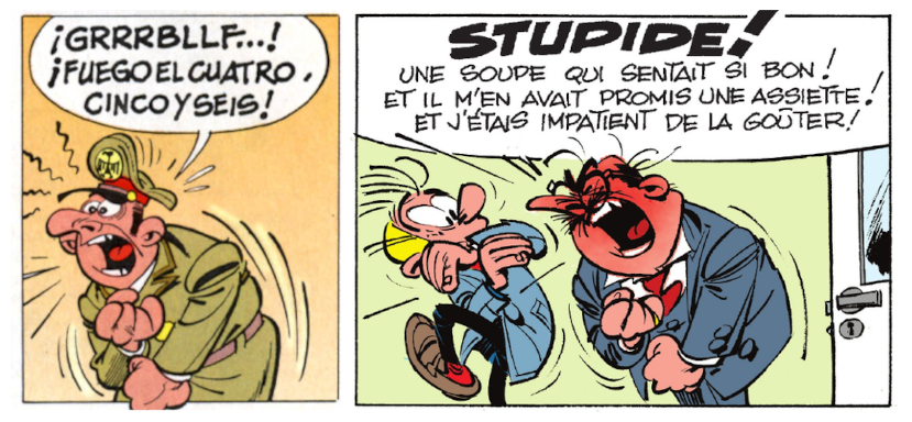 Franquin se documentó con fotografías de los discursos de Hitler. Por influencia del dibujante belga Ibáñez copió las formas enérgicas de los militares nazis. Como vemos, la influencia de autores belgas en la obra de Francisco Ibáñez no se limitó a un mero enriquecimiento de los recursos expresivos de sus historietas: