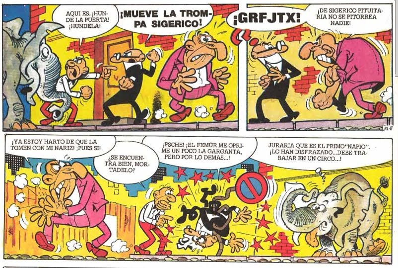 Cerramos el capítulo con uno de los muchos ejemplos en los que Ibáñez crea humor insuflando a sus agentes aires amanerados, más propias del colectivo homosexual que de ellos mismos. El gag aparece en la aventura "El disfraz, cosa falaz":
