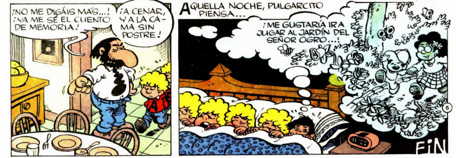 Aunque Superlópez es el personaje más conocido de cuantos ha creado Juan Lopez Fernández (JAN), lo cierto es que Pulgarcito es, sin lugar a dudas, el segundo personaje que más éxito ha cosechado y que los aficionados recordamos con especial cariño. El dibujante de Toral de los Vados creó la serie en 1981, inspirado en el protagonista del conocido cuento del folclore popularizado por los hermanos Grimm y Perrault (y que en inglés también conocen como Tom Thumb). El personaje de Jan llevó el nombre de la revista en la que debutaría. Una revista que Bruguera había logrado mantener en el mercado durante décadas, aunque tuviera que hacerlo resucitándola en diversas ocasiones, cual ave fénix. La revista original empezó siendo publicada por la editorial El Gato Negro (que después se convertiría en la célebre Bruguera), en 1921, y llegó a reeditarse en varias ocasiones, incluso tras la desaparición de la propia editorial. Fue en 1987, cuando Ediciones B tomó las riendas y se hizo heredera del fondo Bruguera, tras su quiebra. Pulgarcito resucitaba y lograba convertirse en la publicación que más tiempo había perdurado en el mercado nacional, después del célebre TBO. Ambas revistas habían visto nacer a algunos de los personajes más emblemáticos del tebeo español, como Mortadelo y Filemón, Las hermanas Gilda, Carpanta, la Familia Ulises o Zipi y Zape.