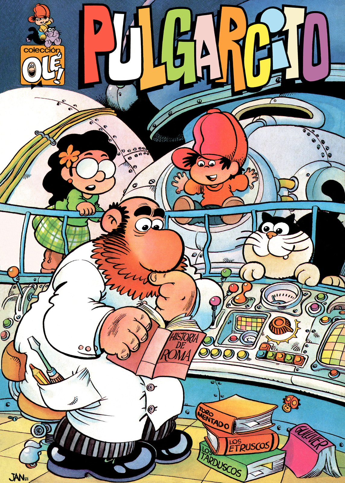 Pero volvamos al tema que nos ocupa: la entrañable serie de Jan. A comienzos de 1981, la editorial Bruguera, en su afán de reconversión para adaptarse a los nuevos tiempos, propuso a Jan, a Raf y a Ibáñez que creasen una serie que se utilizaría como tirón para una nueva revista. El personaje creado por Jan fue el que logró posicionarse por delante de los propuestos por sus compañeros de profesión; por delante del Tete Cohete de Ibáñez y de la propuesta de Raf. Abanderaría esta nueva revista de Bruguera, pensada con un formato casi de bolsillo (18'5 x 15 cm), con cien páginas a color y cubiertas en rústica, y a un precio de cincuenta pesetas. Imitaba a otras publicaciones con el mismo formato: el clásico Don Miki, publicado por Montena, que había gozado de mucho éxito en los años previos, y seguía teniéndolo en ese momento, y a la inolvidable Copito (también de Bruguera).