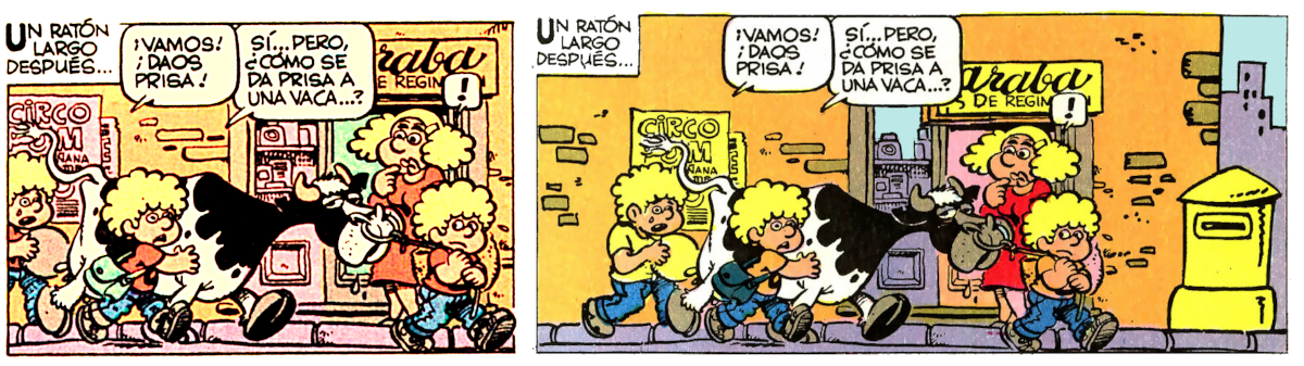 Dcha:  Viñeta ensanchada en el remontaje posterior en Pulgarcito nº 14 (1/VI/1981)
