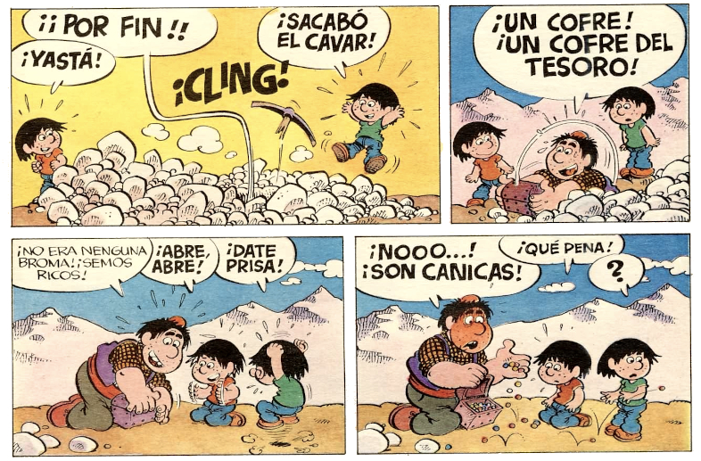 Los gemelos Moncho y Fino, junto a su padre Rufino, encuentran un tesoro