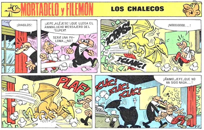 El Súper pide a Mortadelo y Filemón que prueben el último invento del profesor Bacterio. Se trata de un chaleco-pistola capaz de disparar al detectar el ruído de una palmada.