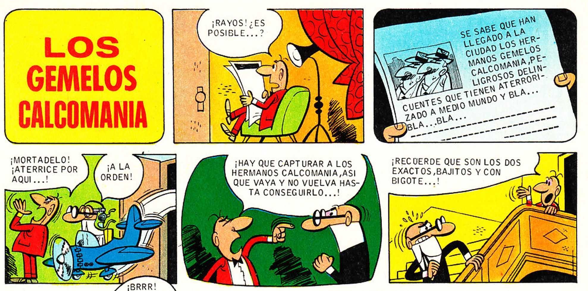 Los peligrosos gemelos calcomanía han llegado a la ciudad y Filemón ordena a Mortadelo que vaya en su busca. Mortadelo, afectado por el alcohol y con visión doble, captura a un tipo creyendo que iba acompañado de su hermano gemelo y que se trataba de los delincuentes.