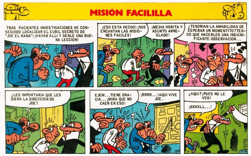 El Súper ha localizado el cubil de Joe el "Rana" y pide a Mortadelo y Filemón que acudan allí para capturarle.