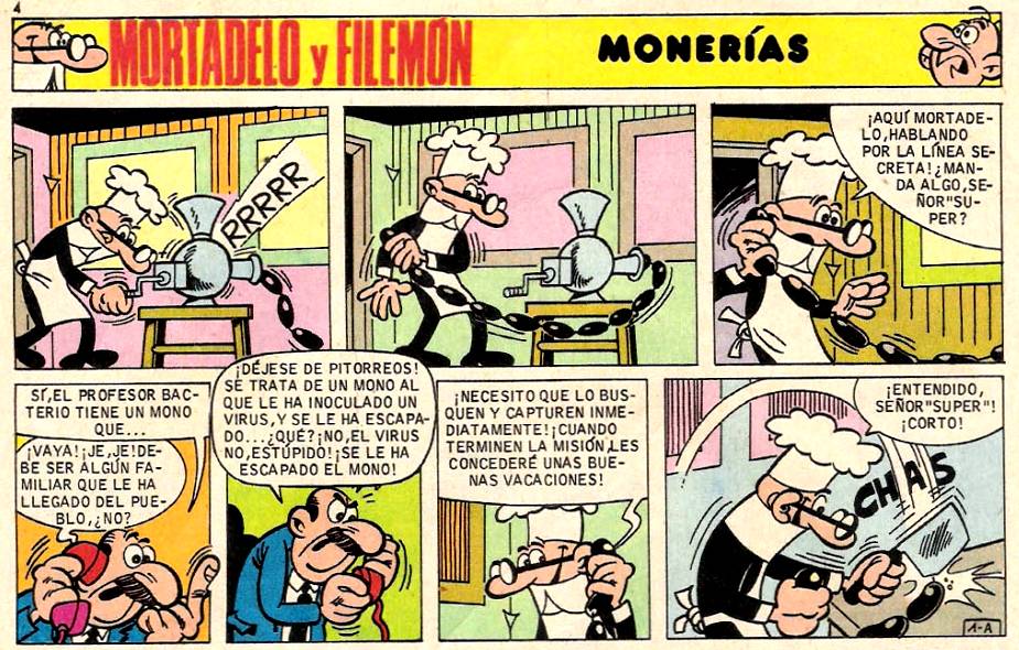 Al Profesor Bacterio se le ha escapado un mono de su laboratorio al que ha inoculado un virus y el Súper pide a Mortadelo y Filemón que le capturen inmediatamente a cambio de unas merecidas vacaciones una vez cumplida la misión.
