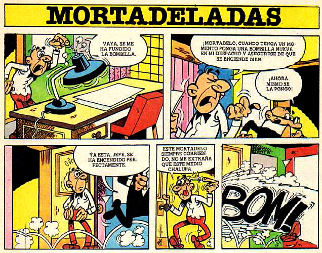 A Filemón se le funde una bombilla y pide a Mortadelo que traiga una nueva pero Mortadelo confunde el término utilizado por su jefe...