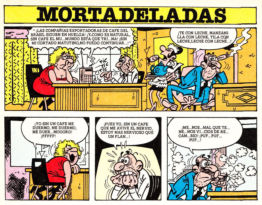 Una huelga de las compañías exportadoras de café en Brasil convierte a la bebida en objeto de deseo. En la T.I.A. todos enloquecen cuando Mortadelo parece alertar a todos de que por fin hay café...