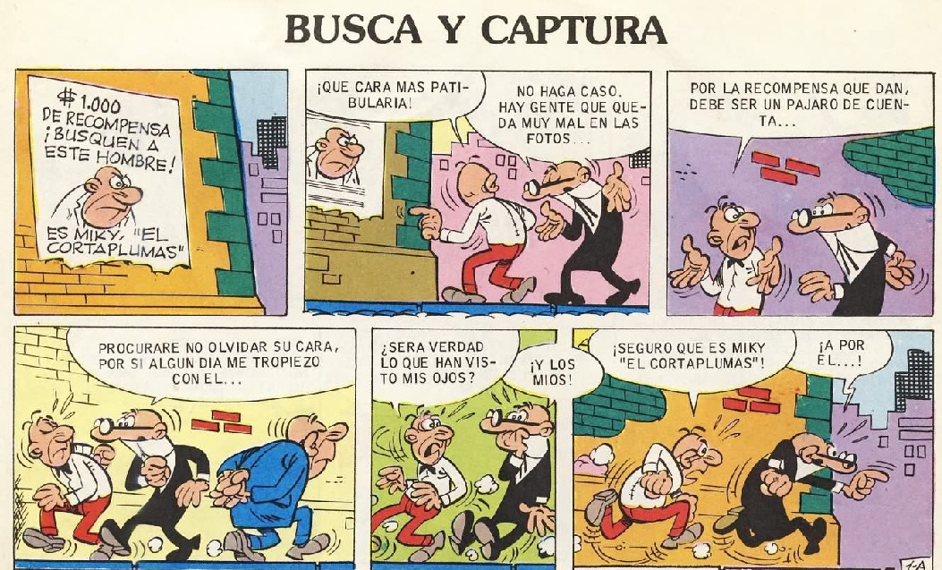 Mortadelo y Filemón perseguirán en esta historieta a Miky "El Cortaplumas", un peligroso delincuente por el que ofrecen una jugosa recompensa.