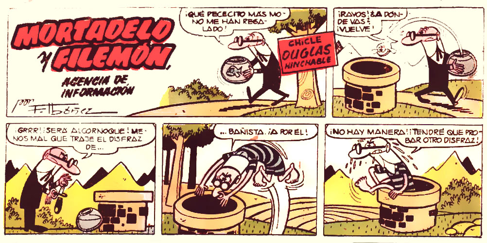 A Mortadelo le han regalado un pez pero éste logra saltar de la pecera y colarse en un pozo. Cuando por fin Mortadelo consigue sacarlo del pozo Filemón vuelve a lanzarlo allí con idea de que el pez nadase con más libertad.
