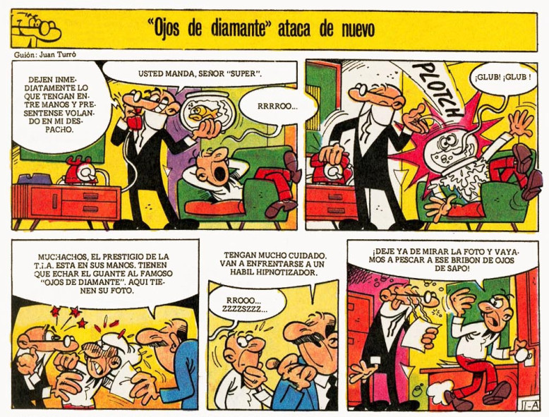 Mortadelo y Filemón habrán de enfrentarse en esta misión a un poderoso maleante llamado "Ojos de Diamante". El villano utiliza su capacidad hipnótica para delinquir y asaltar joyerías...