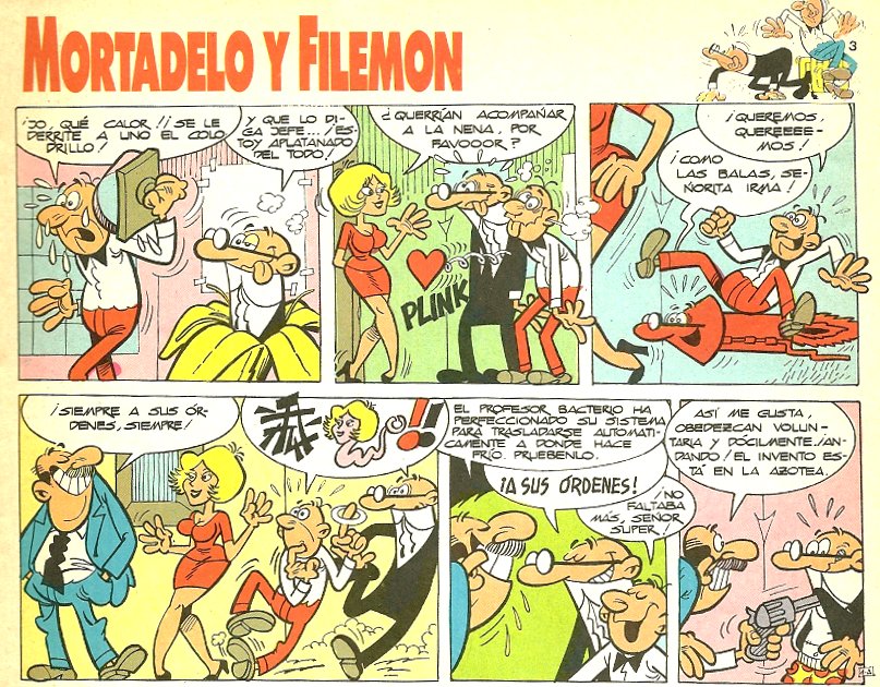 El profesor Bacterio ha perfeccionado su sistema para trasladarse automáticamente a donde hace frío y el Súper pide a Mortadelo y Filemón que lo prueben.