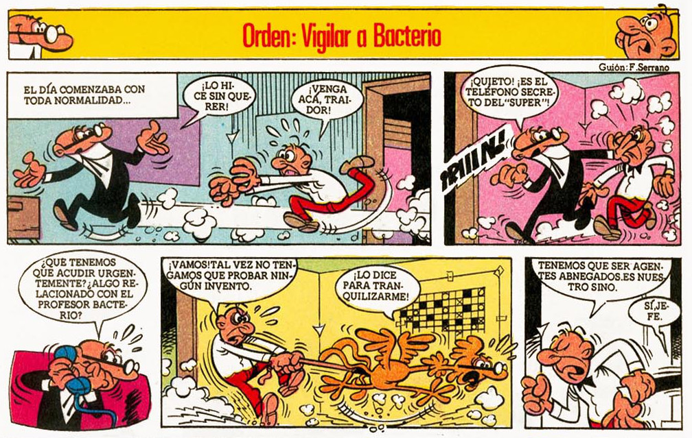 Bacterio ha tomado por error un brebaje que a ratos le convierte en un vampiro. El Súper tiene unas instrucciones para devolverle a su estado normal y ha pedido a Mortadelo y Filemón que localicen al profesor.