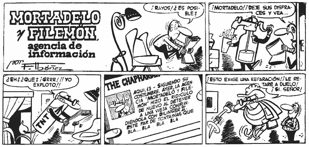 La agencia de información ha quedado ridiculizada en la prensa después de que detuviesen a una anciana confundiéndola con un delincuente. Mortadelo intentará subsanar la situación enfrentando en un duelo a Filemón y al periodista que escribió el artículo.
