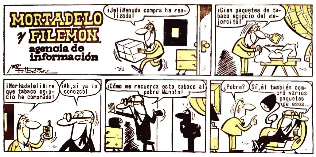Filemón ha comprado cien paquetes de tabaco egipcio del mejorcito y Mortadelo logra convencerle de que se deshaga de ellos.