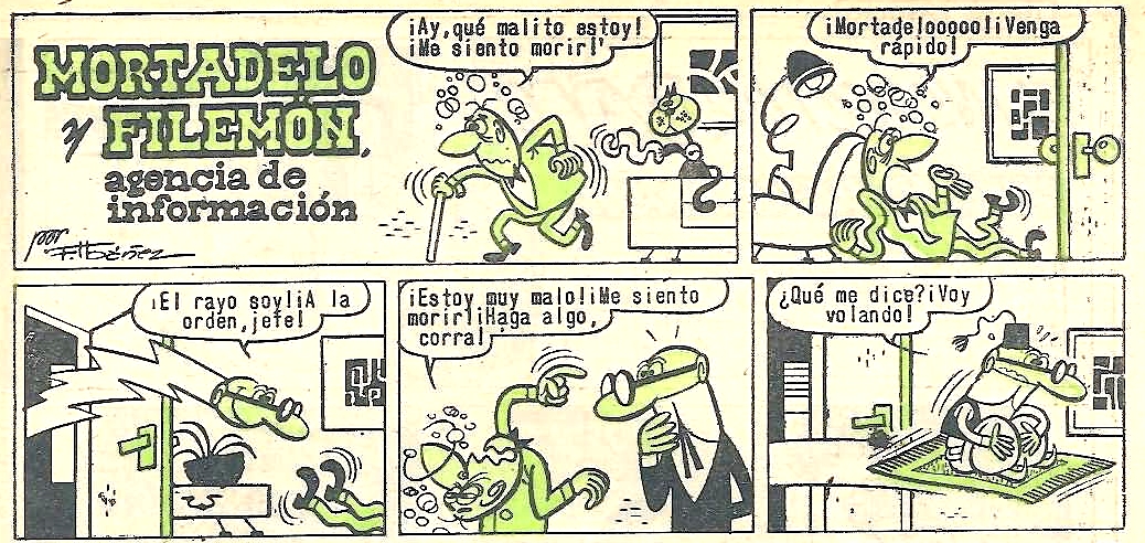Filemón se siente morir y pide ayuda a Mortadelo que recurre a la prensa para buscar un nuevo empleo en caso de que el jefe falleciera.