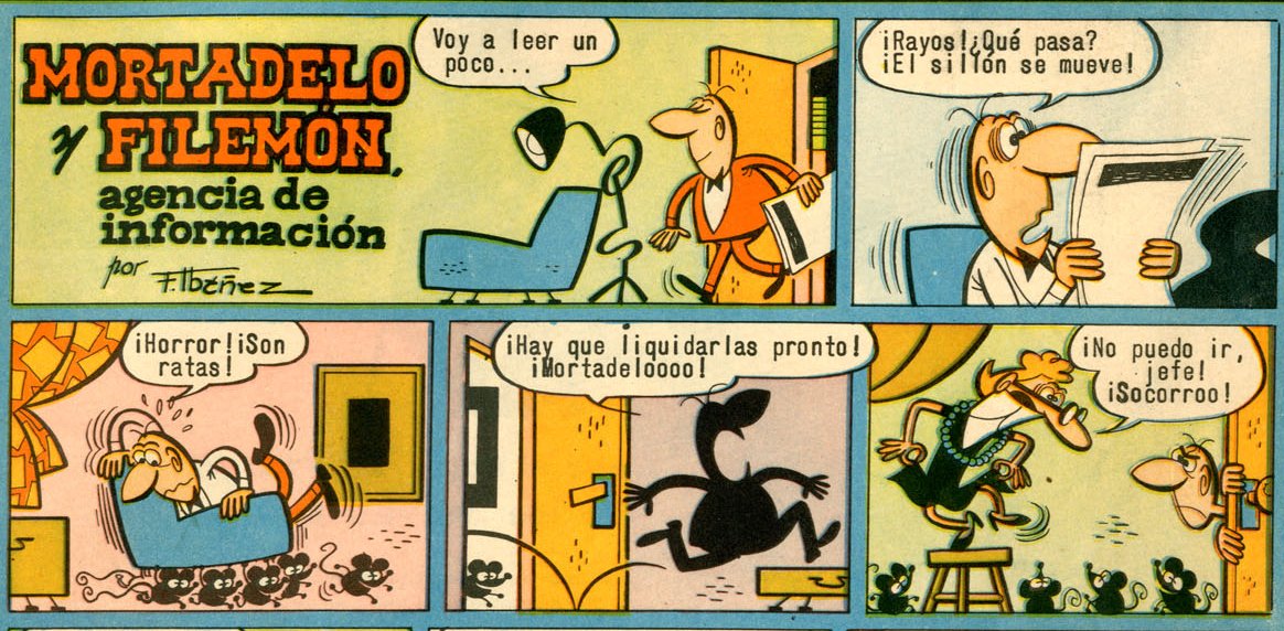 La agencia de información se ha llenado de ratas y Filemón pide a Mortadelo que vaya a comprar un buen raticida. Mortadelo se presenta en casa con un gato de gran tamaño dispuesto a liquidarlas a todas.