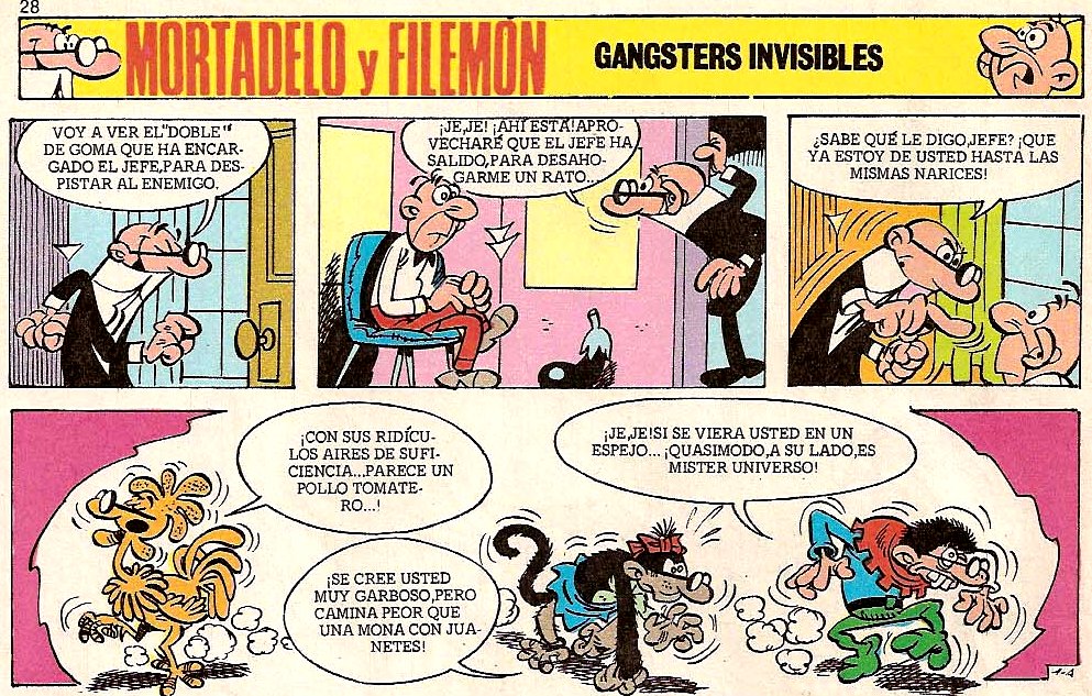 El profesor Bacterio había inventado una fórmula para hacerse invisible, pero ha sido robada por unos gángsters que quieren liquidar al Súper y podrían encontrarse ya infiltrados en la propia T.I.A.. Mortadelo y Filemón intentarán atraparlos lo antes posible.