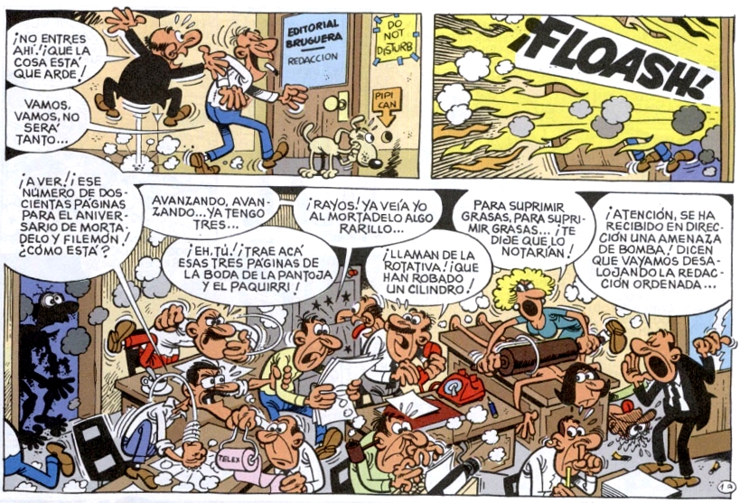 La dirección de la editorial Bruguera ha recibido una amenaza de bomba y Mortadelo y Filemón han acudido a la editorial para localizar el explosivo. La aventura no es más que una parodia de los entresijos de la editorial que además da a conocer a muchos de los personajes que la integraban: Julio Fernández, Matías Guíu, Raf, Montse Vives... ¡y hasta el propio Francisco Ibáñez!