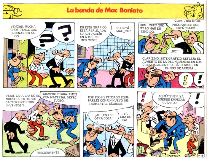 El "Súper" muestra a Mortadelo un gráfico que indica el aumento de la delincuencia en los últimos meses. Los agentes tratarán de demostrar al "Súper" que son capaces de combatir esa delincuencia y comenzarán por seguir la pista de Mac Boniato, que parece que está intentando formar una nueva banda.
