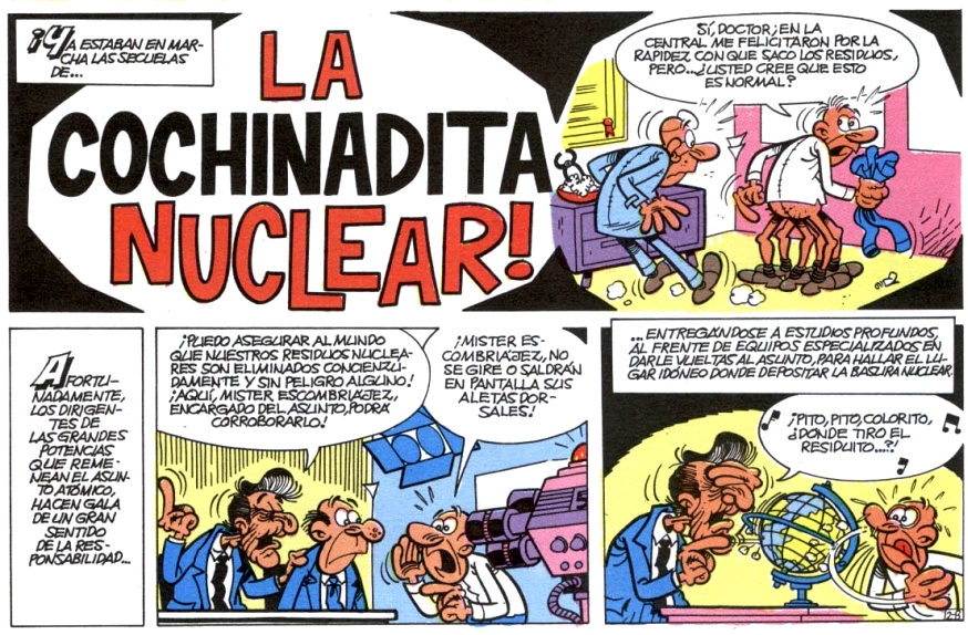 Una potencia extranjera -EE. UU.- está introduciendo residuos nucleares en España por distintos medios. El doctor Coliflorindo Repóllez, diputado por Los Verdes, informa a Mortadelo y Filemón de los transportes de residuos, y éstos deben detenerlos antes de que provoquen radiaciones y mutaciones genéticas (Fte: Wikipedia).