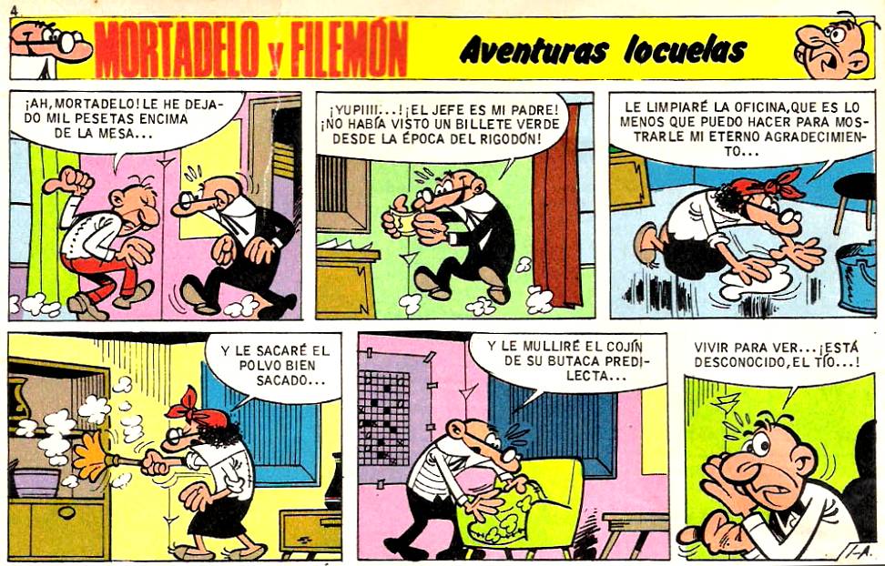 El Súper está harto del desorden que impera en la oficina de Mortadelo y Filemón y les da dinero para que compren un armario nuevo. Mortadelo se presenta con un armario-cama en la oficina. La aventura recuerda a otra aventura realizada por Francisco Ibáñez que se publicó posteriormente como "El armario de Mortadelo".