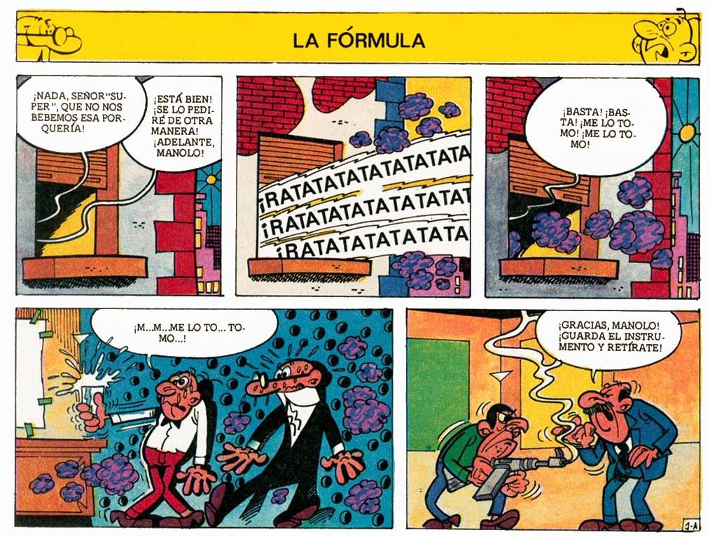El profesor Bacterio ha inventado una fórmula para relajar y hacer más elástico el cuerpo y el Súper quiere que Mortadelo y Filemón la prueben. Se trata de una aventura que recuerda poderosamente a "La elasticina".