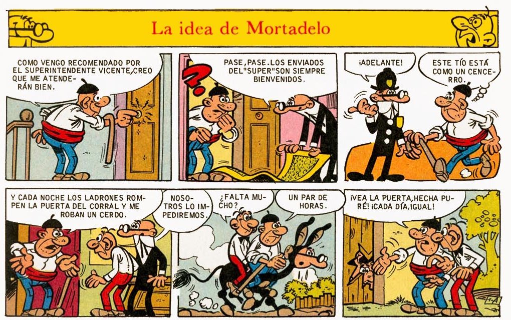 Un labriego se presenta en casa de Mortadelo y Filemón por recomendación del Súper y les comenta que todos los días los ladrones le roban un cerdo. Encargará a los agentes averiguar qué está pasando. Se trata de una versión de la historieta original de Ibáñez publicada en la revista Pulgarcito nº 1505.
