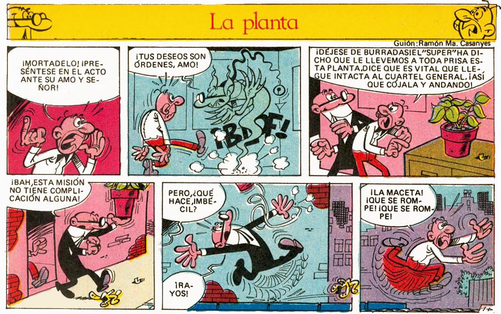 El Súper pide a Mortadelo y Filemón que le lleven una planta al cuartel general de la organización.
