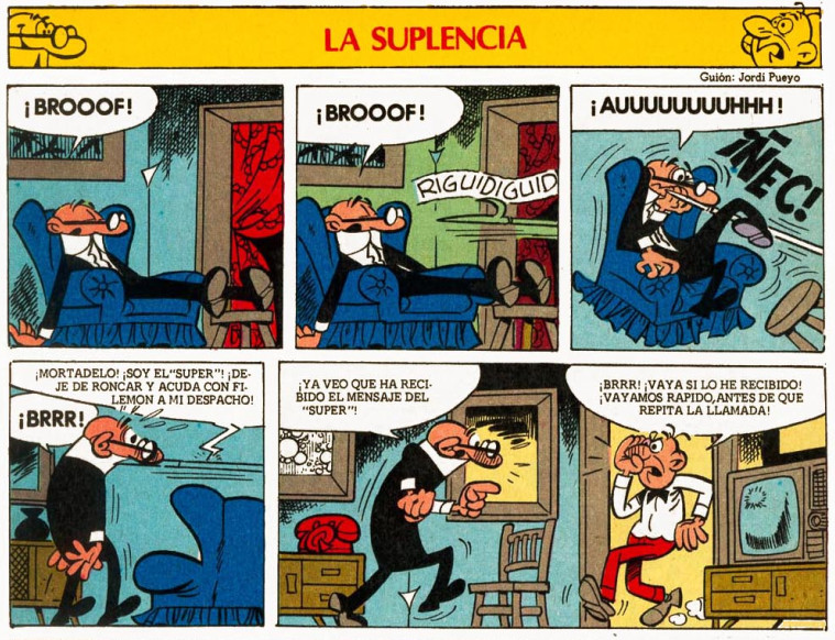 El Súper tiene un fuerte resfriado y decide delegar sus funciones en los agentes Mortadelo y Filemón...