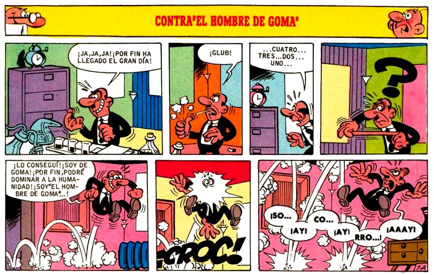 El Súper ordena a Mortadelo y Filemón la difícil misión de atrapar al "Hombre de Goma", un villano capaz de rebotar y esquivar cualquier golpe además de poder alargar cualquiera de sus miembros a voluntad. El tipo utiliza la mencionada virtud para robar bancos y asustar a la gente. Los agentes lo tendrán realmente difícil, si no fuera porque los elásticos efectos del villano no duran una eternidad...