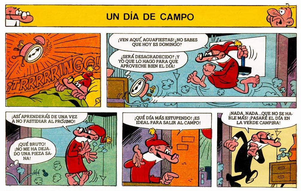 Mortadelo y Filemón deciden pasar un día en el campo y se topan por casualidad con una casa en la que se esconden Mac "el escurridizo" y su ayudante Joe "el oso" a los que atrapan inesperadamente con el propio almuerzo (envenenado por error) que Mortadelo había preparado para ellos mismos.