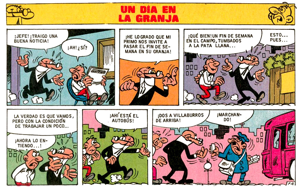 El primo de Mortadelo, Eulogio, ha invitado a éste y a Filemón a pasar un fin de semana en su granja. Los agentes deciden aceptar la invitación y se las prometen muy felices pensando en holgazanear unos días...