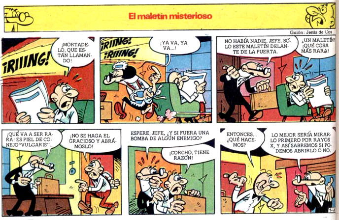 Alguien ha dejado un misterioso maletín en la puerta de la vivienda de Mortadelo y Filemón. Los agentes desconfían del maletín y habrán de decidir qué hacer con él.